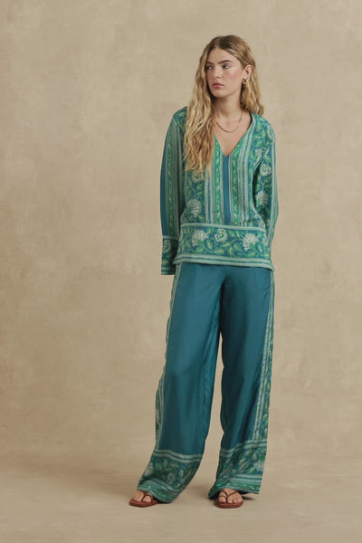 - Hand Printed Loose fit blouse in lightweight Silk Habotai