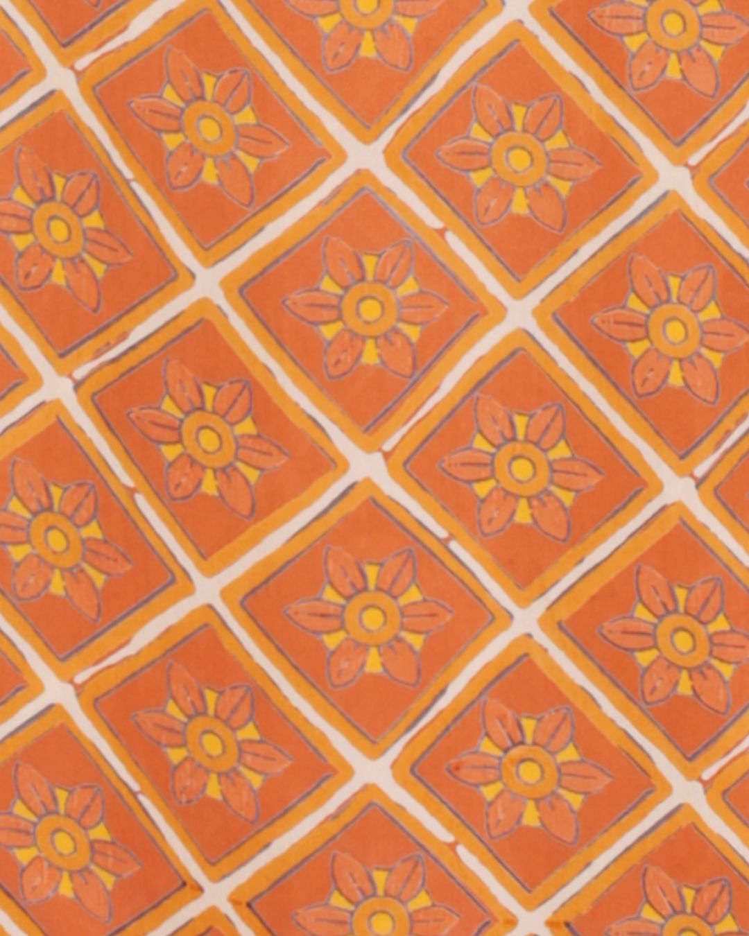 Our Talavera Print was inspired by 18th century Spanish talavera tiles, a colorful glazed Spanish tile found while researching the collection. Working with our teams in India, we created this beautiful diamond floral print, inspired by Spain, hand screen printed in India.