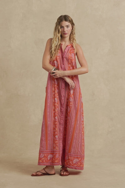 Spring Daisy in Crimson features hand drawn blooms reaching gracefully toward the sun. Set against a rich crimson base, the floral clusters unfold in shades of soft pink and golden yellow, creating a warm, radiant composition. Inspired by traditional woodblock styles, the print balances movement and detail, capturing the lightness of spring with a grounded richness in colour and form.