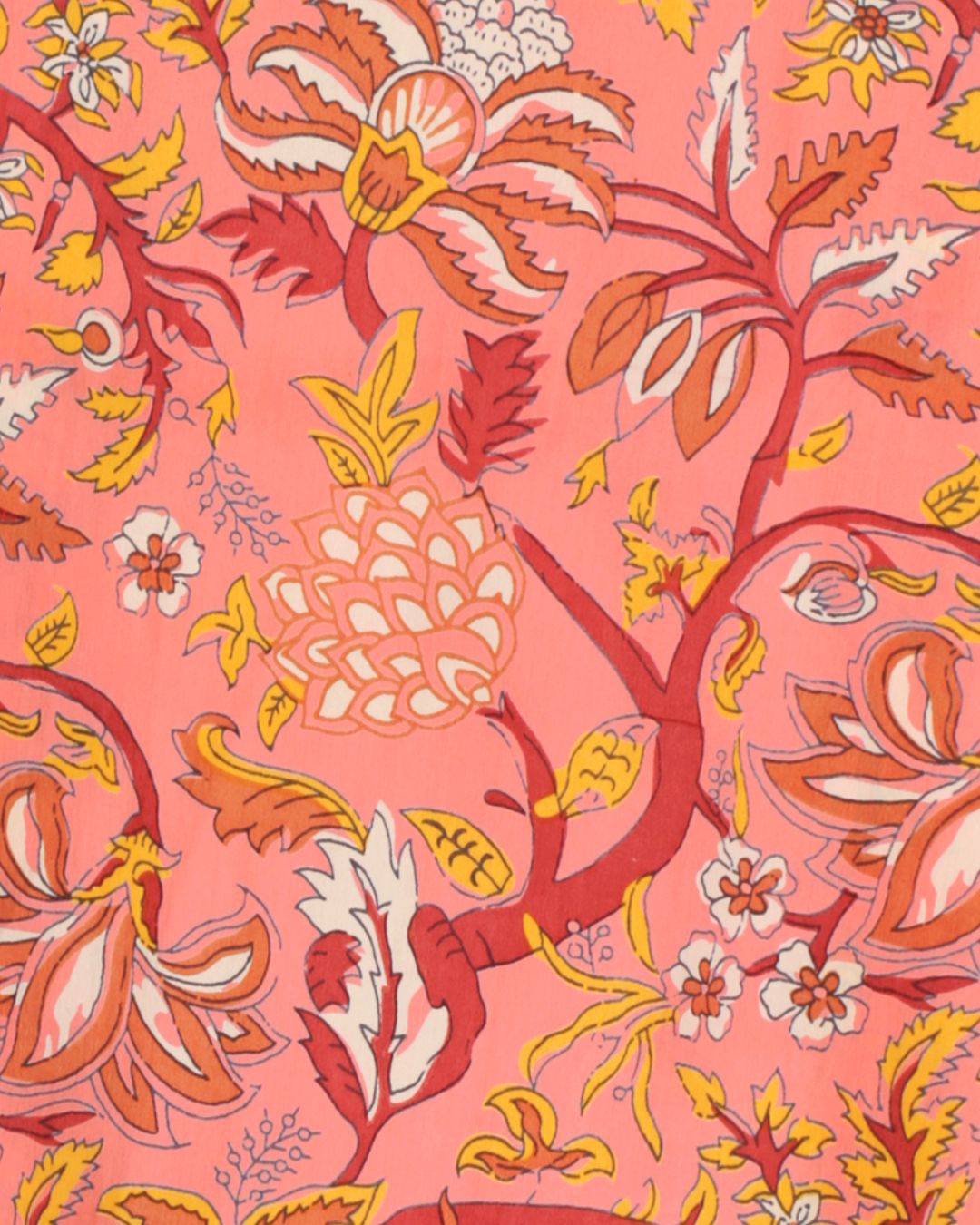 Fernando is a beautiful, hand screen printed vine and floral design, created in collaboration with Hannah and the artians in India. With wild vines and flowers in combinations of rich earthy tones and fuchsia pink, Fernando is an ode to the Spanish Islands of our travels.