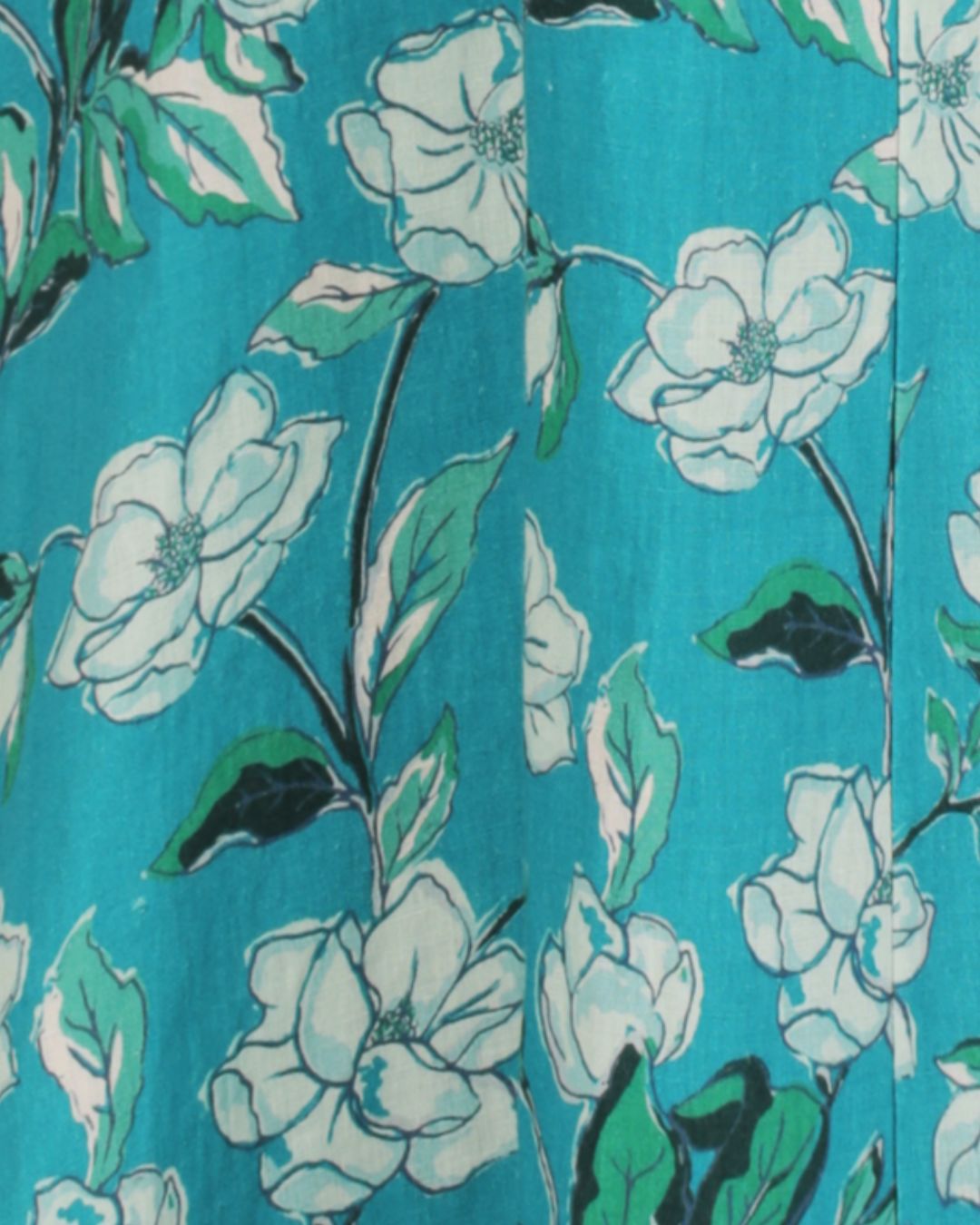 Exclusively hand-drawn for Hannah Artwear, the Magnolia Blue print features fluid brushwork in tonal shades of sky and teal, scattered with soft white blooms. Inspired by vintage botanical studies, this artwork celebrates natural form and movement. The print has been thoughtfully placed to enhance the silhouette, bringing a sense of freshness and coastal elegance to the collection.