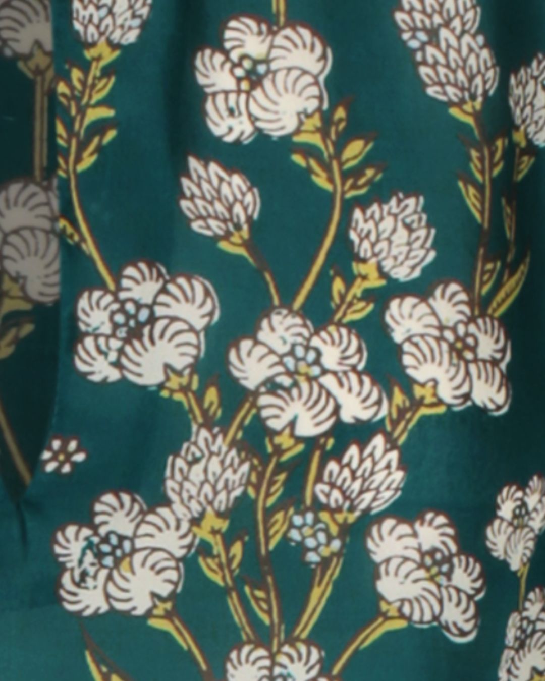 Valencia was created by Hannah and her team as an ode to the unique, beautiful and strong Mullen flower found on the Island of Mallorca. Using woodblock finishes, the artwork creates the appearance of the stems, leaves and flowers growing from the hem of the garment, up the fabric.